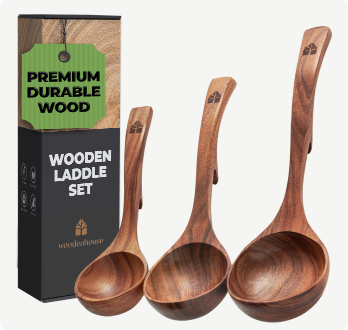The Woodenhouse Wooden Ladle Set of 3 includes three versatile sizes crafted from premium teak wood, perfect for serving soups, sauces, stews, and more. Each ladle features a smooth finish and sturdy design that’s gentle on cookware and comfortable to hold. Whether you’re preparing a family meal or entertaining guests, this set brings reliable function and a natural, timeless look to your kitchen.
