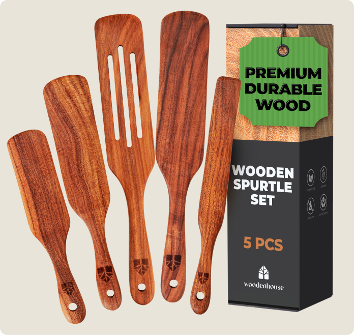 Teak wood is one of the most durable and moisture-resistant hardwoods, making it ideal for kitchen tools. Naturally rich in oils, it repels water, resists warping, and maintains a smooth, splinter-free surface over time. Its dense grain adds strength, while its antibacterial properties keep it safe for food contact.